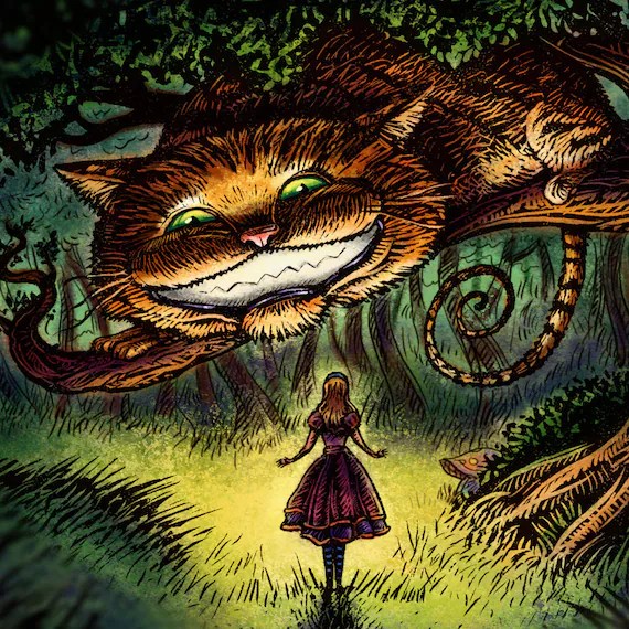 La folie du chat du Cheshire est toutefois plus apparente que réelle et il passe pour l’un des rares personnages pourvus de raison, mais adoptant une attitude nihiliste vis-à-vis de son environnement. Comme Latifah, ce chat qui n’est invité nulle part, a toujours la faculté d’apparaître là où on ne l’attend pas, suscitant l’amusement d’Alice / Alas tout en la / le perturbant profondément, tant il se veut annonciateur d’un avenir redouté et inquiétant.